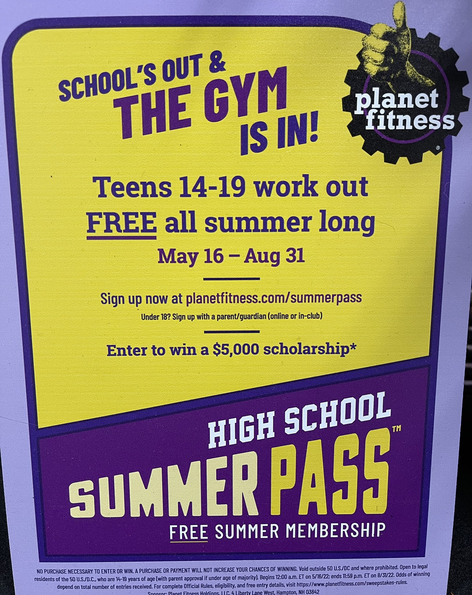 Name A - Z Sponsored Links. Teens 14-19 can work out FREE at Planet Fitness with High School Summer Pass. Sign up today for your free High School Summer.