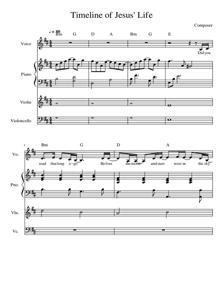 Timeline Of Jesus Life Sheet Music For Piano Vocals Violin Cello Mixed Quartet Musescore Com